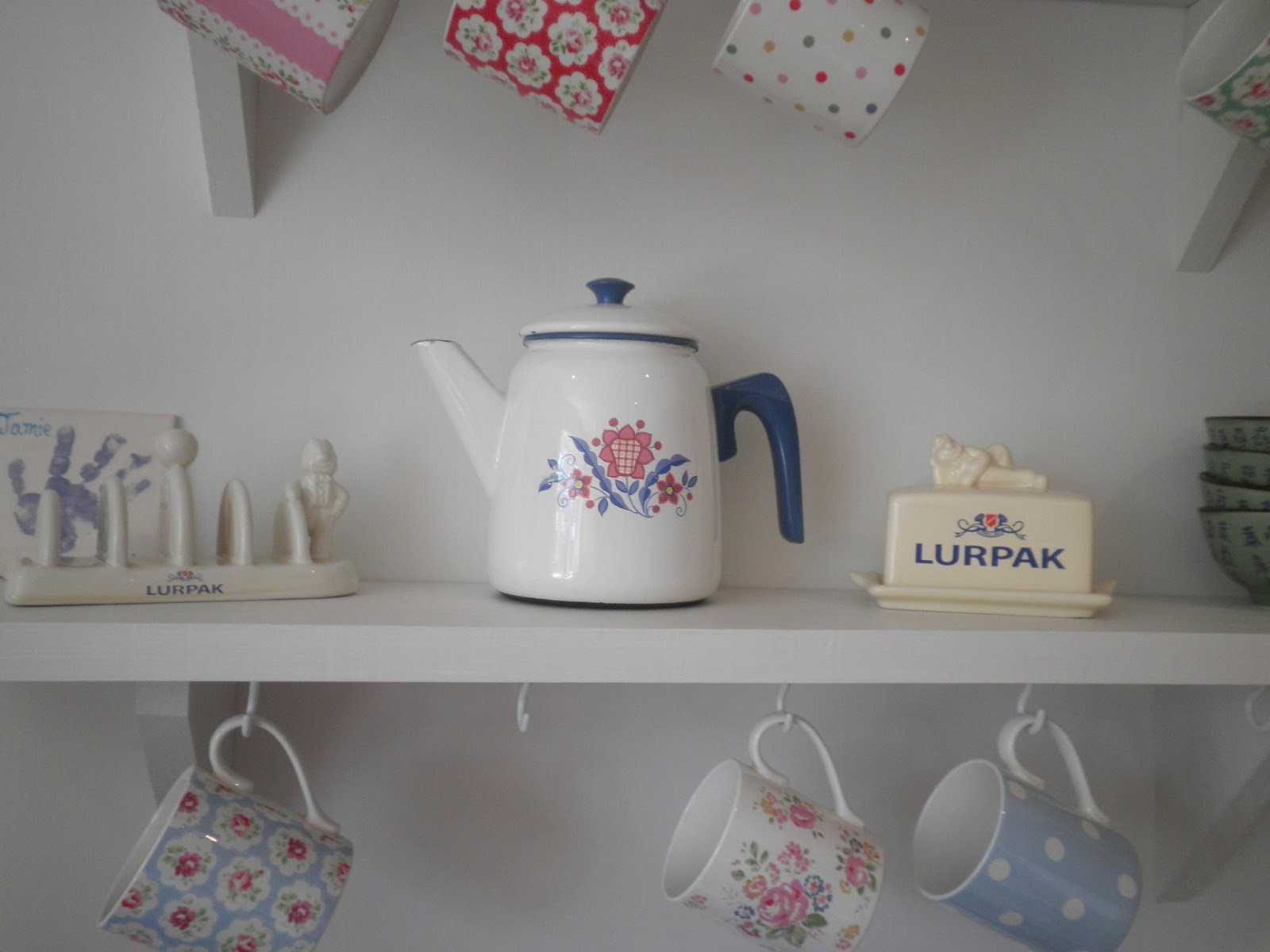 And this teapot for £8 - definitely my favourite buy of the day!! With all my new finds, my Open Kitchen Shelves are finally getting there! What do you think? Just a little more tinkering needed :) |
